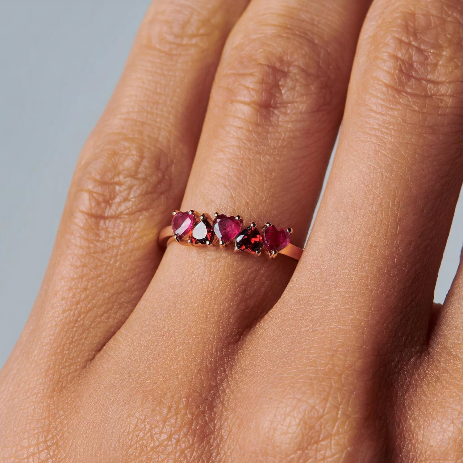 Pierścionek jest jeszcze piękniejszy na żywo niż na zdjęciach. Głęboka czerwień granatu pięknie lśni, a cały design wygląda elegancko. Noszę go codziennie z radością!